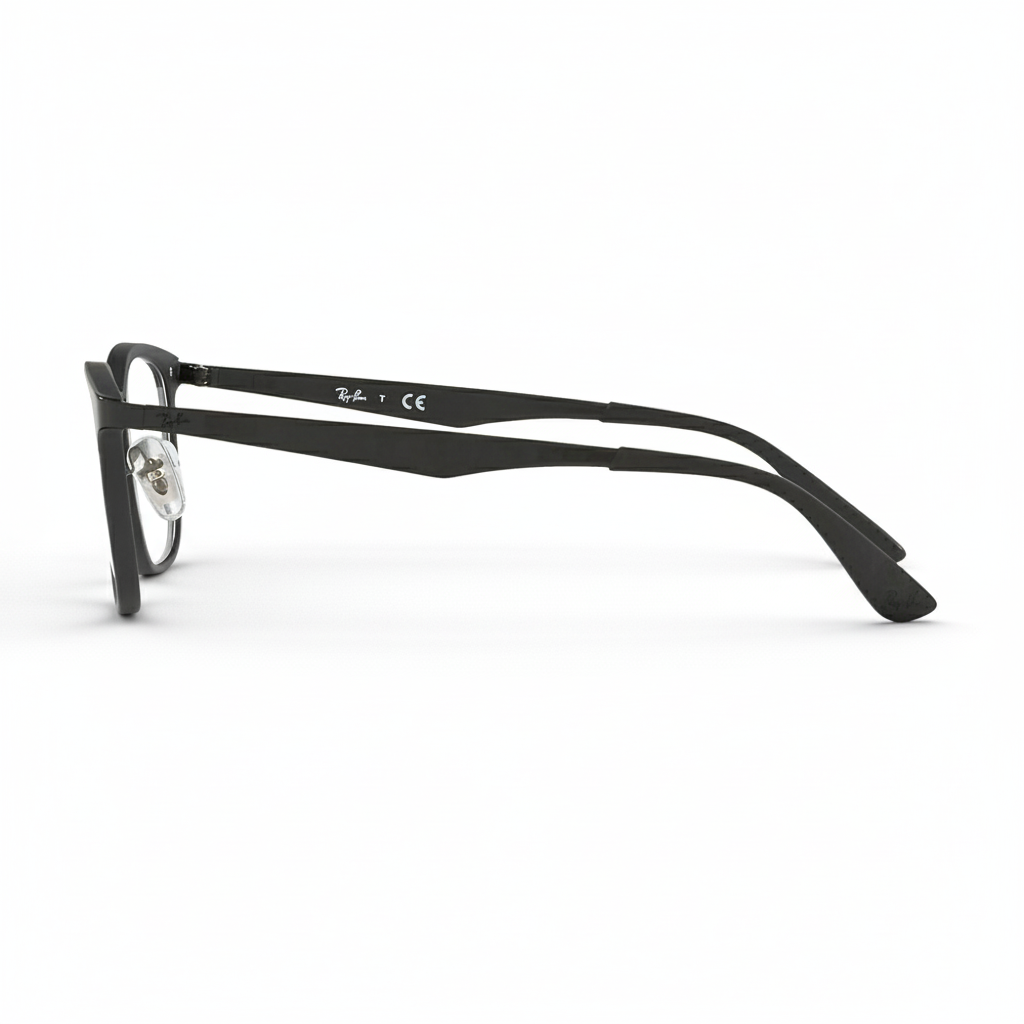 Czarne oprawki Ray-Ban RB 7117 5196 to model okularów korekcyjnych o nowoczesnym, kwadratowym kształcie, który łączy w sobie klasyczny styl z nowoczesnymi materiałami. Oprawki wykonane są z połączenia nylonu i stali, co zapewnia lekkość oraz wytrzymałość. Kolor 5196 to matowa czerń, która nadaje okularom elegancki i uniwersalny charakter, pasujący zarówno do formalnych, jak i casualowych stylizacji.