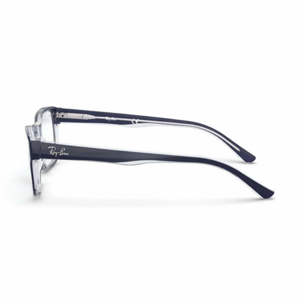 Te okulary łączą przezroczystą spodnią część z intensywnie granatowym frontem, co daje efekt świeżości i nowoczesnego szyku. Wykonane z trwałego acetatu, są delikatne i wygodne nawet przy długim użytkowaniu. Prostokątny kształt pasuje do większości twarzy i dodaje subtelnego charakteru. Wygodne szerokie zauszniki dbają o dobrą stabilność, a klasyczne logo Ray‑Ban na zausznikach podkreśla markowy styl. Model świetnie sprawdzi się zarówno w pracy, jak i w codziennych stylizacjach. To uniwersalny wybór dla osób ceniących połączenie designu i funkcjonalności.