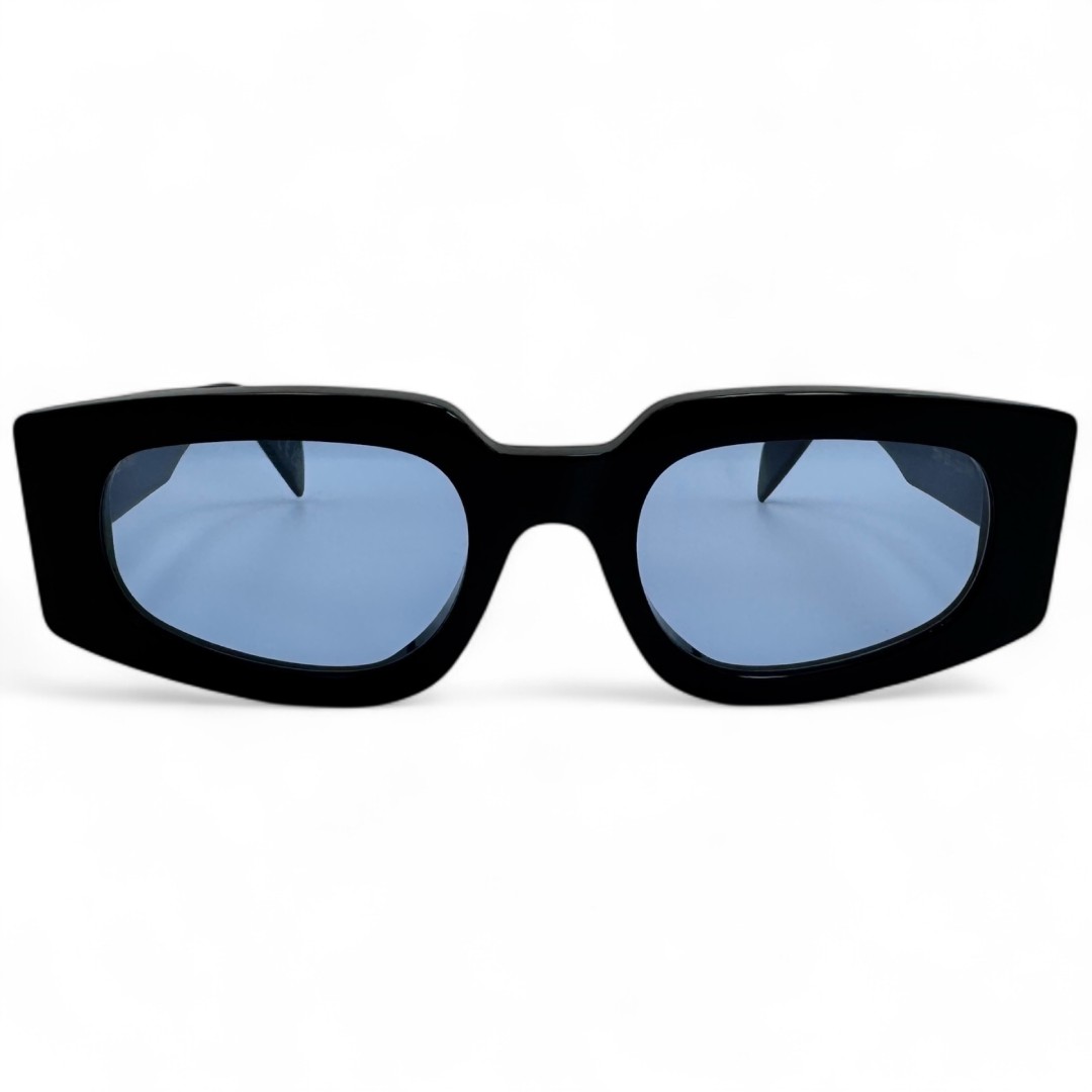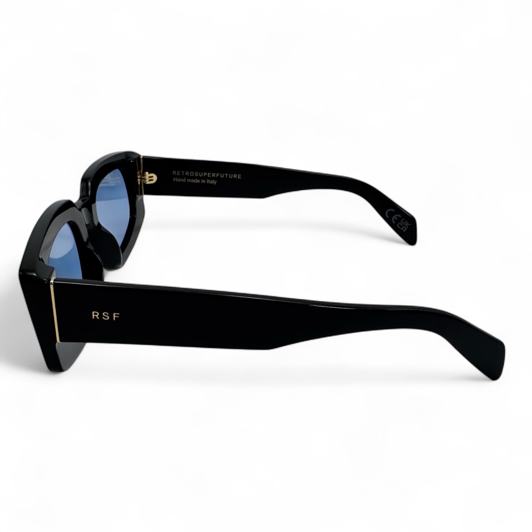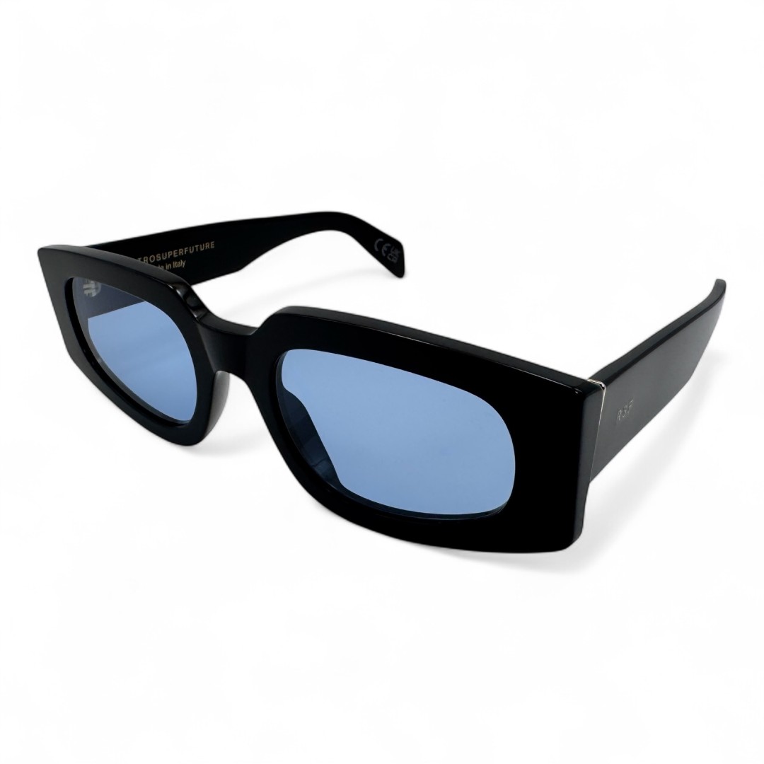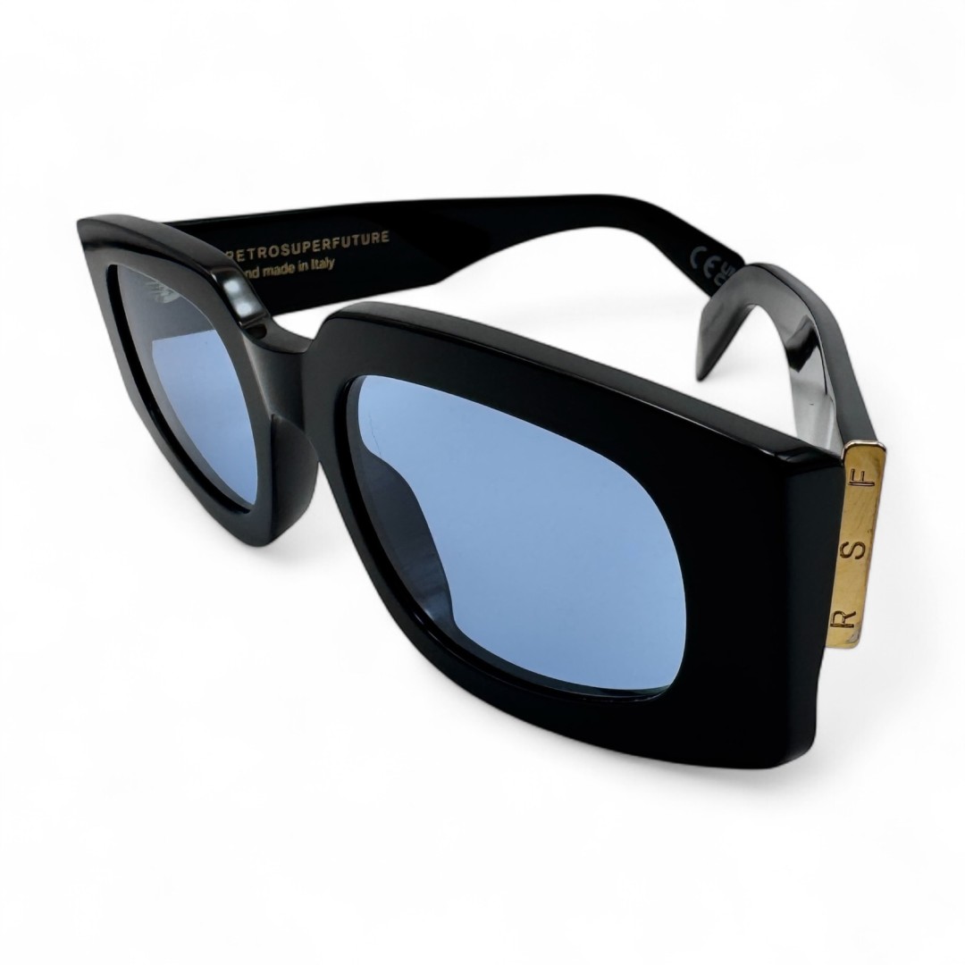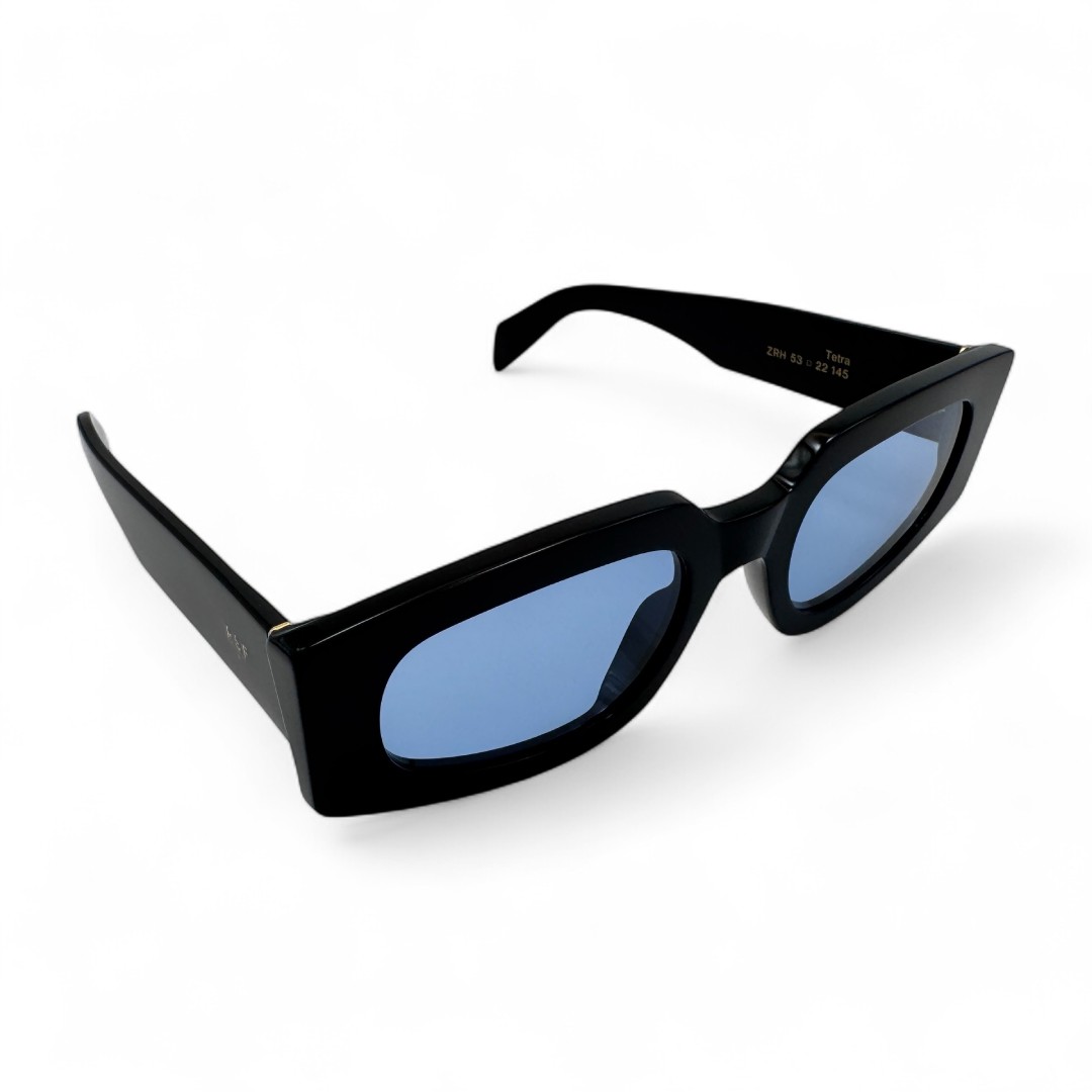 Okulary przeciwsłoneczne z niebieskimi szkłami Retrosuperfuture Tetra ZRH to odważna propozycja dla tych, którzy nie boją się kontrastów i chcą dodać swoim okularom charakteru. Czarna oprawka tworzy mocną, graficzną ramę, która świetnie współgra z nietypową jasnoniebieską soczewką - to jak spotkanie klasycznej elegancji z futurystycznym akcentem. Soczewki przyciągają uwagę i nadają całości lekko tajemniczy, chłodny vibe, jakby patrzeć przez zimny błękit lodu. Model ma wyraźny, kanciasty kształt, który dodaje zdecydowania, ale dzięki przemyślanej konstrukcji jest też wygodny i dobrze leży na twarzy. Tetra ZRH to okulary dla tych, którzy lubią bawić się stylem i nie boją się wyróżniać — balans między surowością czerni a żywiołowością niebieskiego, który robi robotę.