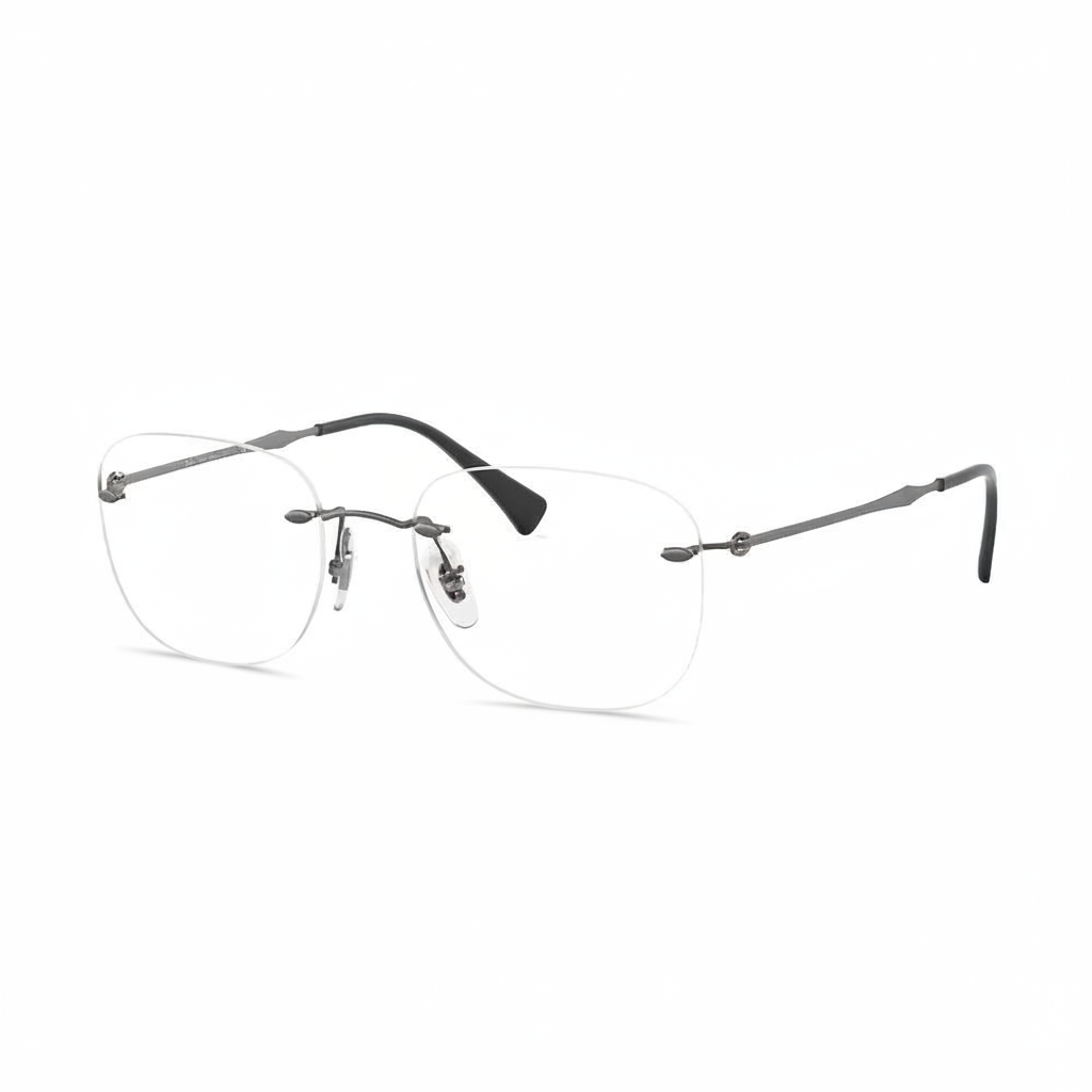 Model RB 8748 w wersji 1128 to delikatne, pozbawione oprawek okulary wykonane z tytanu, które zachwycają lekkością i minimalistycznym stylem. Metal w matowym, chłodnym odcieniu gunmetal tworzy nowoczesny look, a dzięki sprężynowym zawiasom całość świetnie dopasowuje się do kształtu głowy, zapewniając wygodę przez cały dzień. Oprawki, a dokładnie same szkła mają lekko kwadratowy kontur, co dodaje subtelnego charakteru bez zabawy w ozdoby. Dzięki regulowanym noskom szkła można idealnie dopasować do indywidualnej twarzy. To uniwersalny model, który świetnie sprawdzi się w pracy i w luźnych stylizacjach, szczególnie gdy zależy Ci na dyskretnym designie z dobrym wykonaniem.